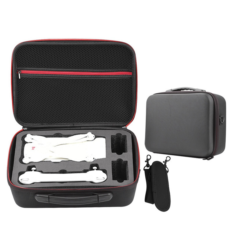 Кейс виконаний з міцного матеріалу, надійно захищає його вміст. Всередині розташовані спеціальні поролонові відсіки, що повторюють форму Xiaomi Fimi X8 SE, пульта та акумуляторів. Також на внутрішній частині кришки кейса знаходиться місткий еластична кишеня, куди зможуть поміститися будь негабаритні частини. Бокс має зручну ручку для перенесення, а також ремінь через плече.